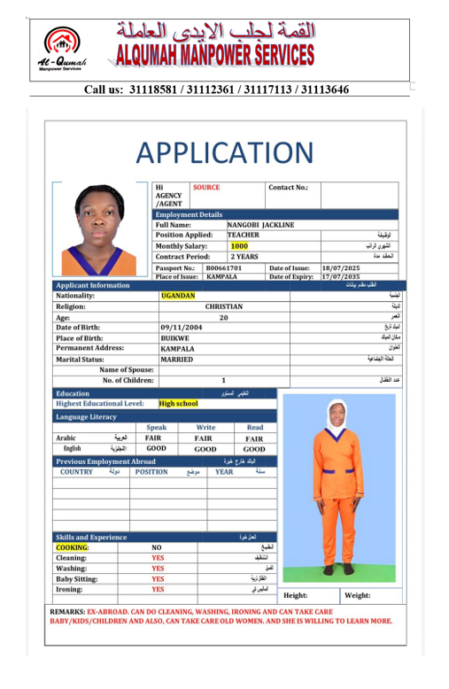 Name - English JACKLINE NANGOBI