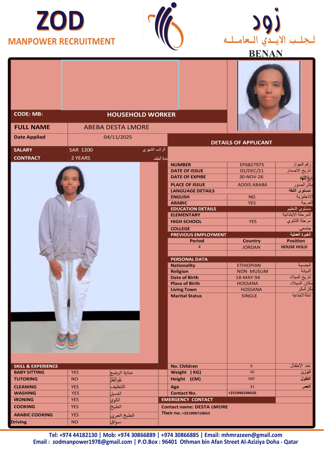 Name - English ABEBA DESTA LMORE 1