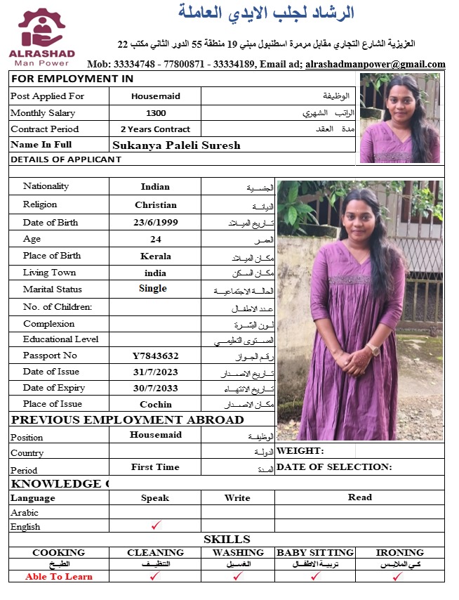 Welcome Are you looking for a driver, nurse, house manager, cleaner, nanny, secretary, professional workers for companies, security and guard personnel, foreman .... etc. Have you spent a long time looking for a maid? Have you made a great effort to find the right person? But to no avail ... Don't worry, we have the perfect solution to your problem Services…