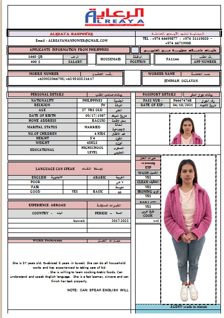 Name - English JEMIMAH OGLAYON ( RETURNED)