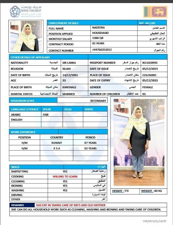 Welcome Are you looking for a driver, nurse, house manager, cleaner, nanny, secretary, professional workers for companies, security and guard personnel, foreman .... etc. Have you spent a long time looking for a maid? Have you made a great effort to find the right person? But to no avail ... Don't worry, we have the perfect solution to your problem Services…
