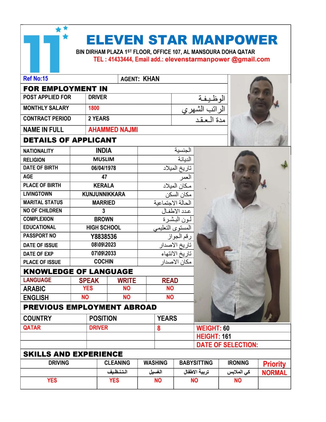 AHAMMED NAJMI/ DRIVER WITH QATAR LICENCE