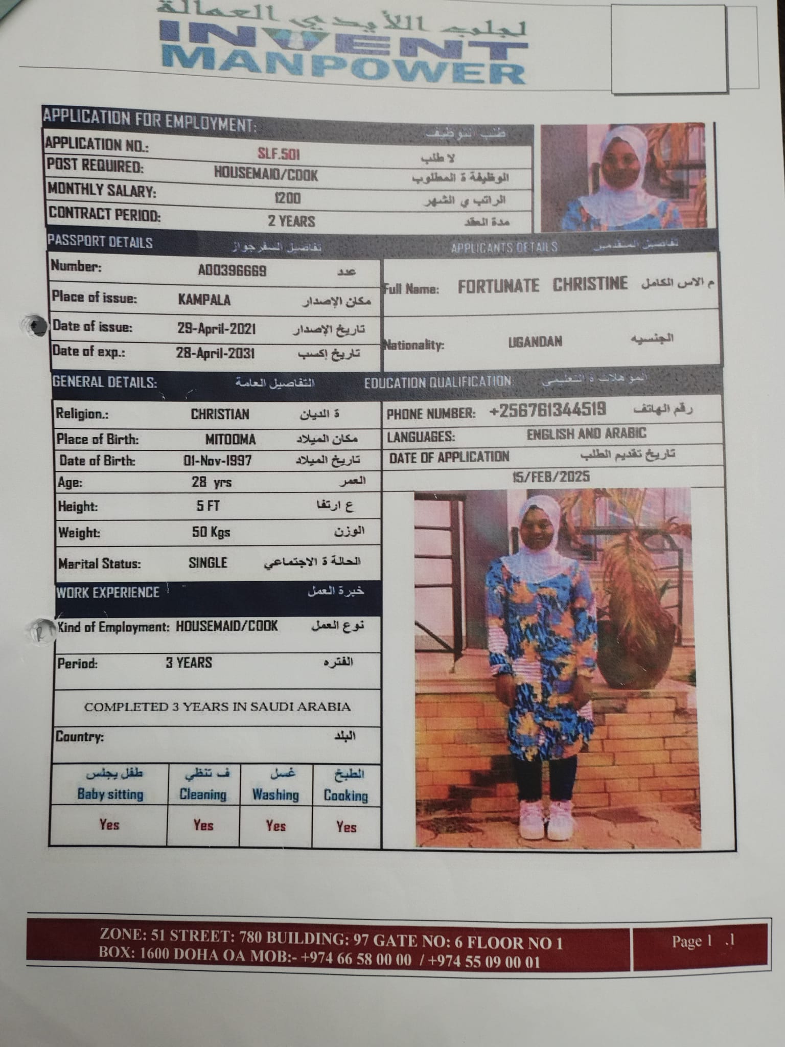 Salary 1200 QAR