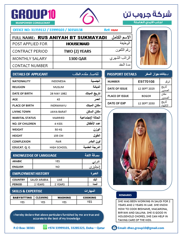 Welcome Are you looking for a driver, nurse, house manager, cleaner, nanny, secretary, professional workers for companies, security and guard personnel, foreman .... etc. Have you spent a long time looking for a maid? Have you made a great effort to find the right person? But to no avail ... Don't worry, we have the perfect solution to your problem Services…