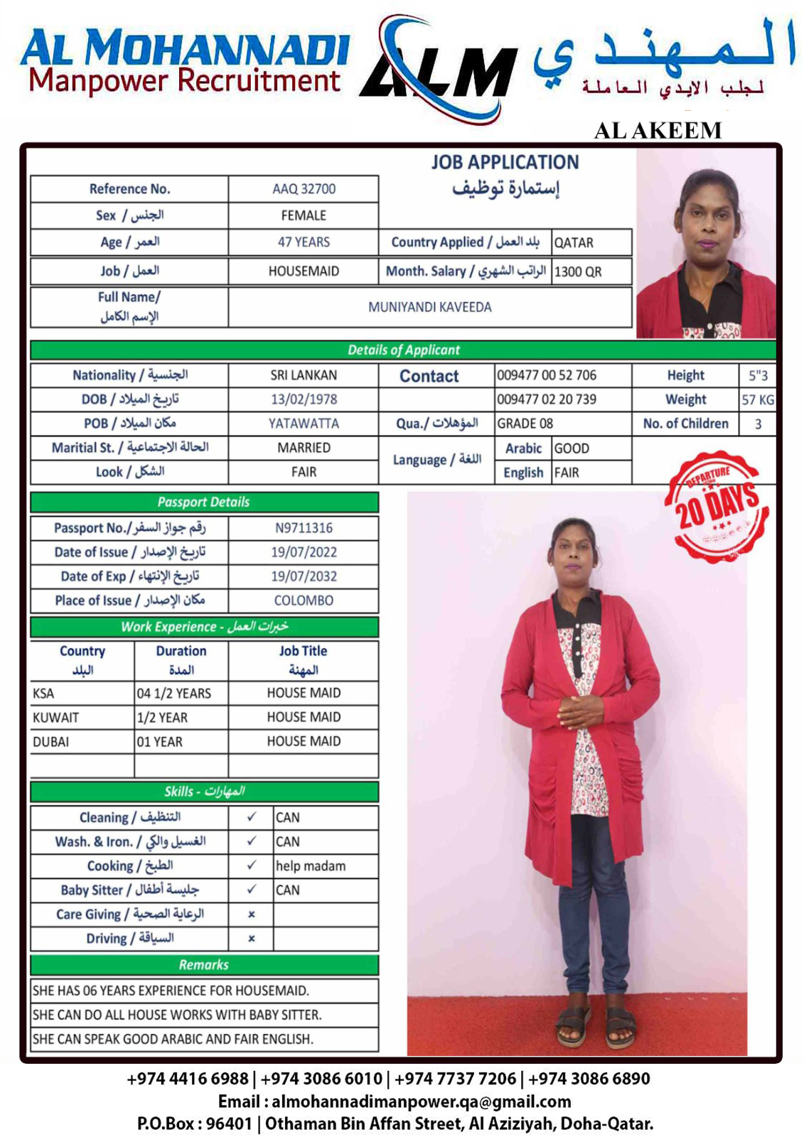 Welcome Are you looking for a driver, nurse, house manager, cleaner, nanny, secretary, professional workers for companies, security and guard personnel, foreman .... etc. Have you spent a long time looking for a maid? Have you made a great effort to find the right person? But to no avail ... Don't worry, we have the perfect solution to your problem Services…