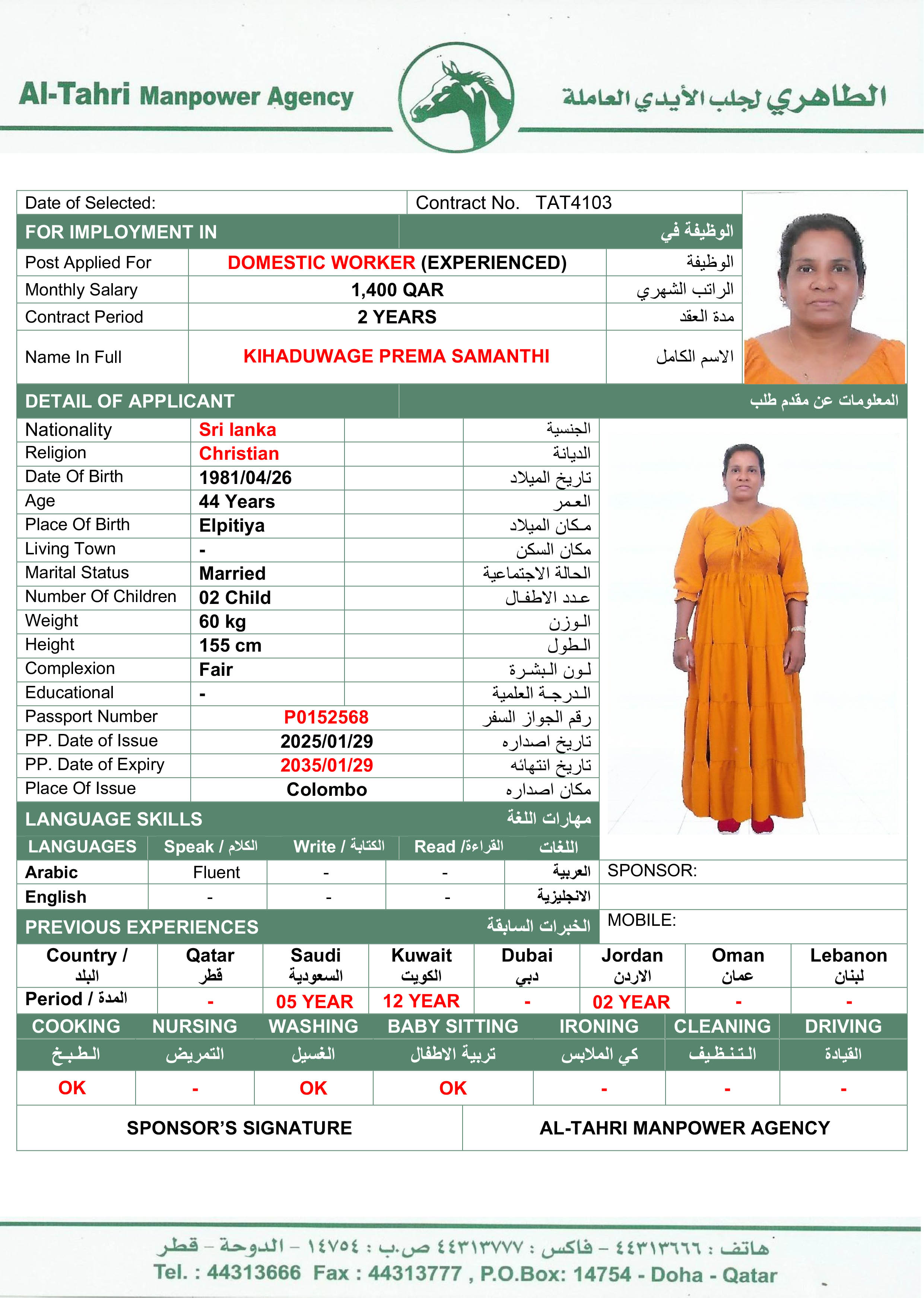 Welcome Are you looking for a driver, nurse, house manager, cleaner, nanny, secretary, professional workers for companies, security and guard personnel, foreman .... etc. Have you spent a long time looking for a maid? Have you made a great effort to find the right person? But to no avail ... Don't worry, we have the perfect solution to your problem Services…