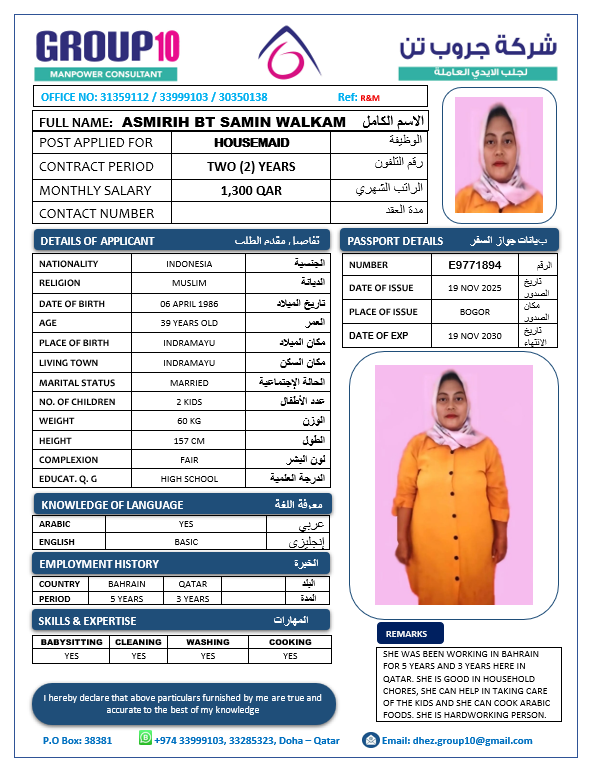 Welcome Are you looking for a driver, nurse, house manager, cleaner, nanny, secretary, professional workers for companies, security and guard personnel, foreman .... etc. Have you spent a long time looking for a maid? Have you made a great effort to find the right person? But to no avail ... Don't worry, we have the perfect solution to your problem Services…