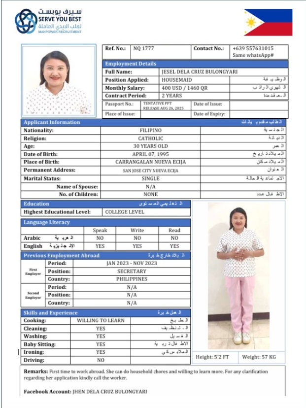 Welcome Are you looking for a driver, nurse, house manager, cleaner, nanny, secretary, professional workers for companies, security and guard personnel, foreman .... etc. Have you spent a long time looking for a maid? Have you made a great effort to find the right person? But to no avail ... Don't worry, we have the perfect solution to your problem Services…