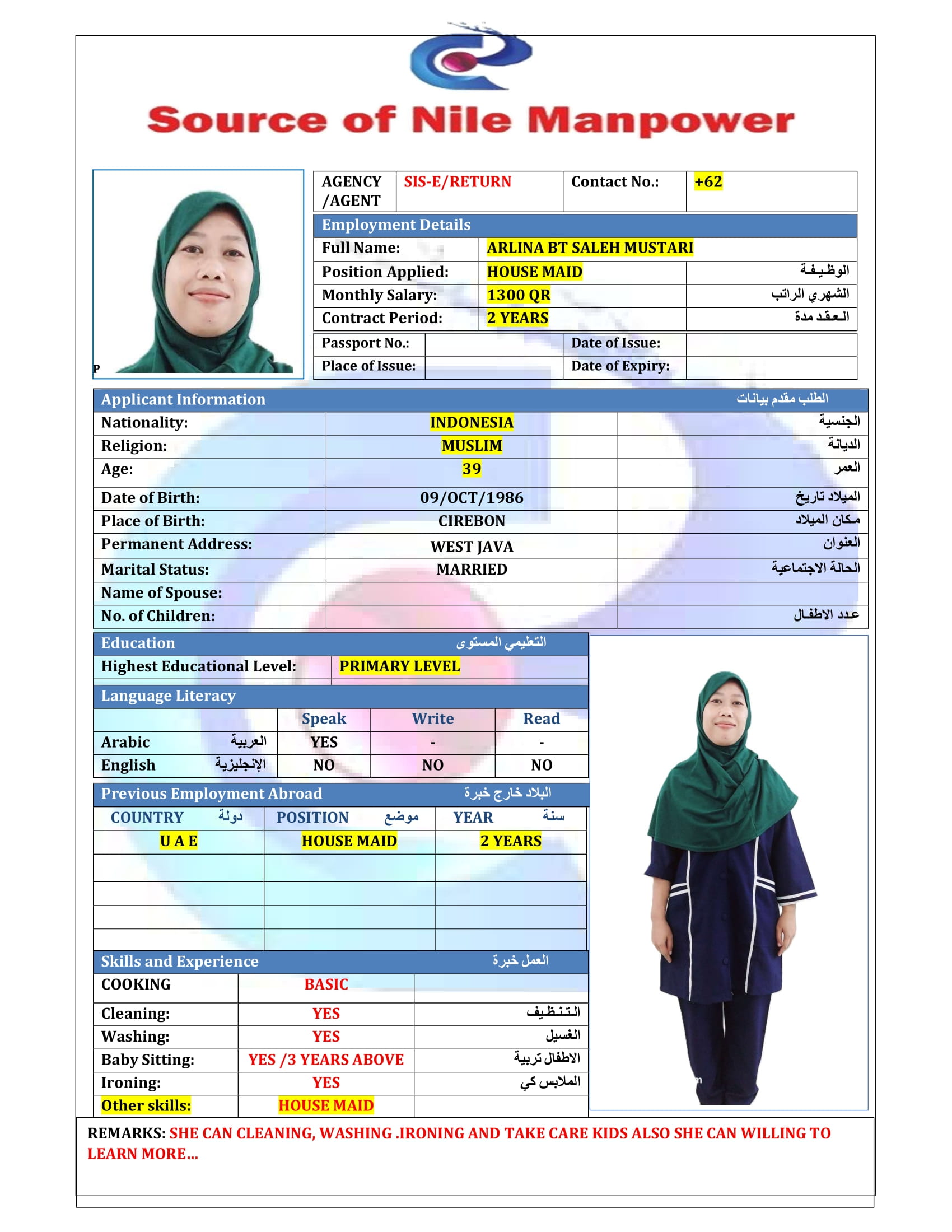 Welcome Are you looking for a driver, nurse, house manager, cleaner, nanny, secretary, professional workers for companies, security and guard personnel, foreman .... etc. Have you spent a long time looking for a maid? Have you made a great effort to find the right person? But to no avail ... Don't worry, we have the perfect solution to your problem Services…