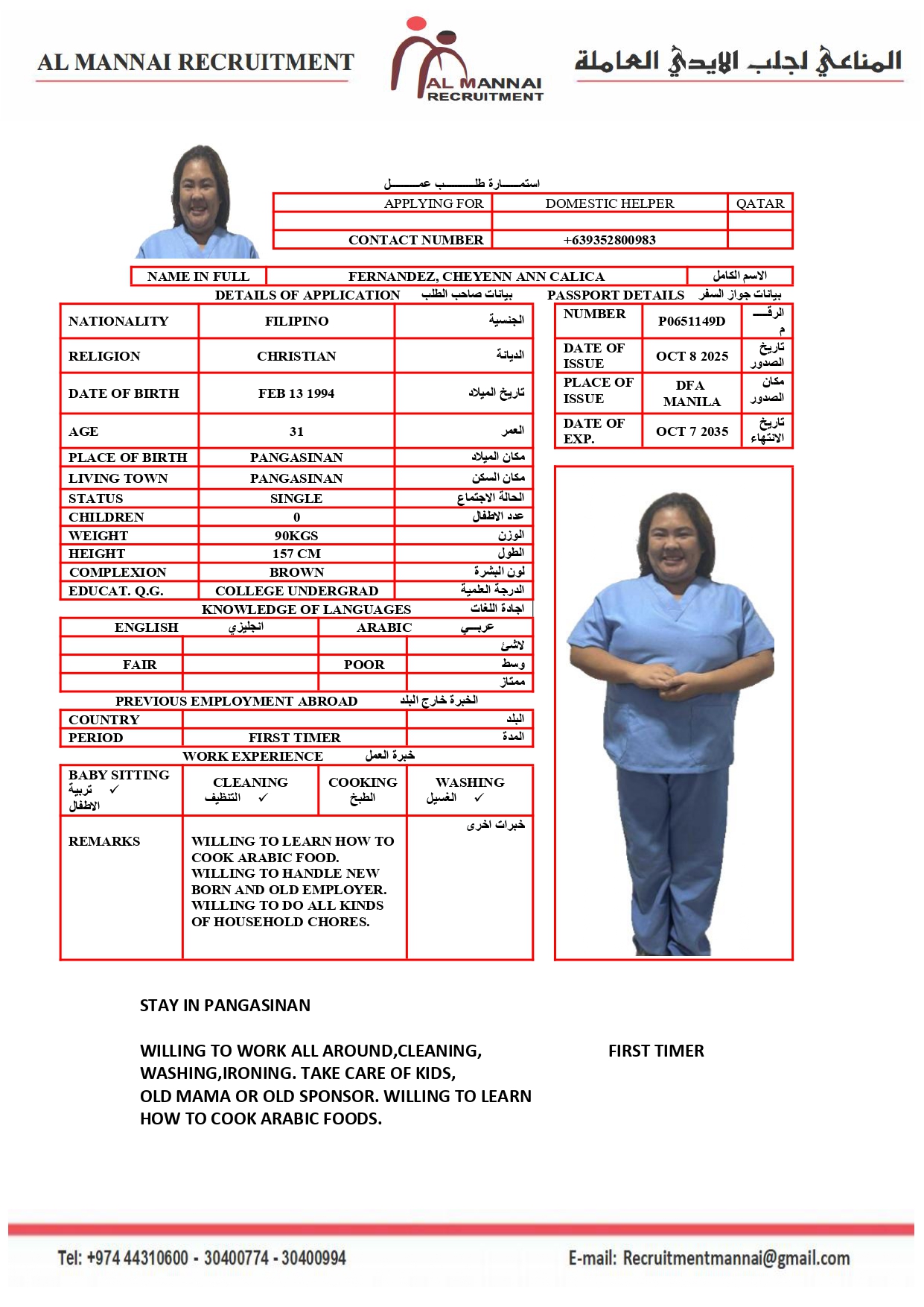 Name - English CHEYENN ANN CALICA FERNANDEZ