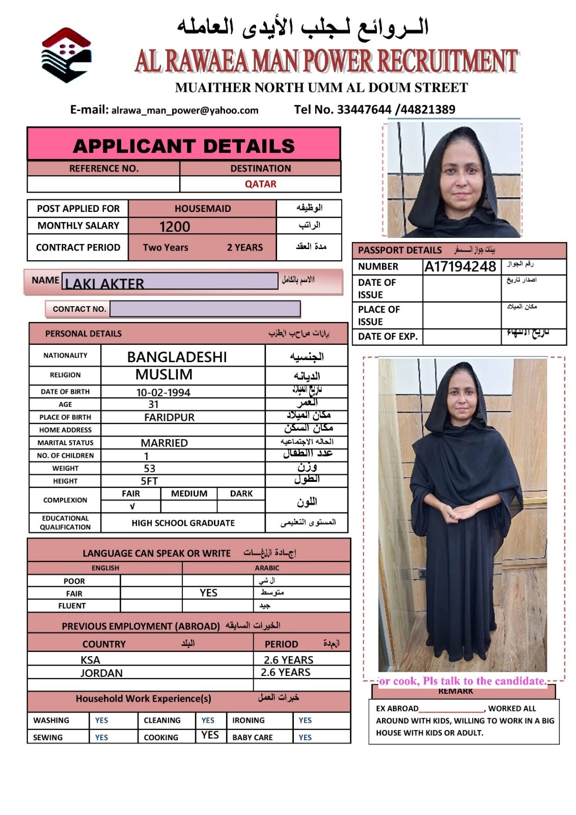 Welcome Are you looking for a driver, nurse, house manager, cleaner, nanny, secretary, professional workers for companies, security and guard personnel, foreman .... etc. Have you spent a long time looking for a maid? Have you made a great effort to find the right person? But to no avail ... Don't worry, we have the perfect solution to your problem Services…