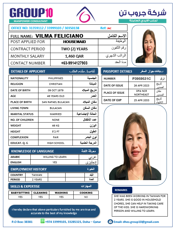 Name - English VILMA FELICIANO