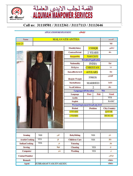 Name - English ANITHA MALAVATHI