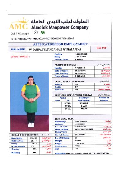 Name - English W SAMPATH SANDAMALI WIMALASENA