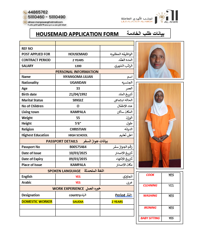 Name - English NYANGOMA LILIAN