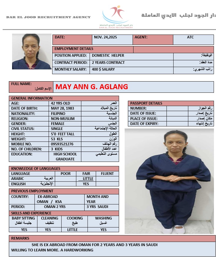 Name - English MAY ANN GONZALES AGLANG