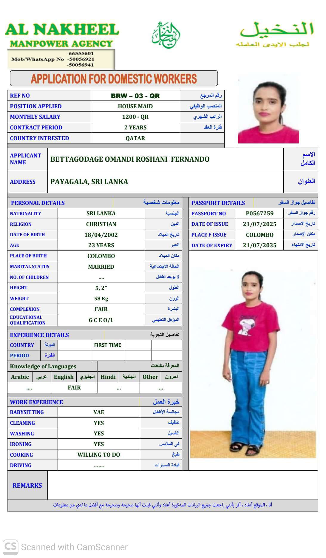 Name - English BETTAGODAGE OMANDI ROSHANI FERNANDO