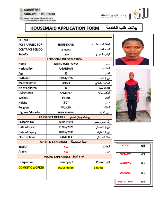 Welcome Are you looking for a driver, nurse, house manager, cleaner, nanny, secretary, professional workers for companies, security and guard personnel, foreman .... etc. Have you spent a long time looking for a maid? Have you made a great effort to find the right person? But to no avail ... Don't worry, we have the perfect solution to your problem Services…