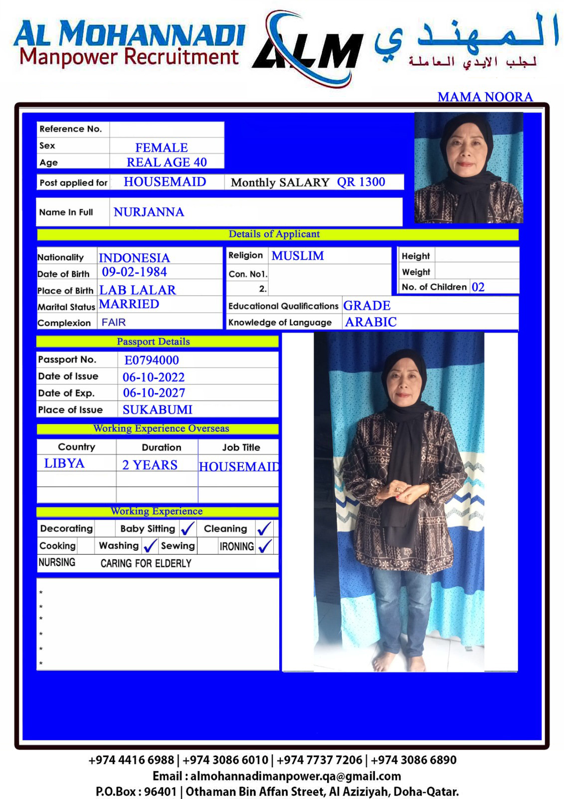 Welcome Are you looking for a driver, nurse, house manager, cleaner, nanny, secretary, professional workers for companies, security and guard personnel, foreman .... etc. Have you spent a long time looking for a maid? Have you made a great effort to find the right person? But to no avail ... Don't worry, we have the perfect solution to your problem Services…