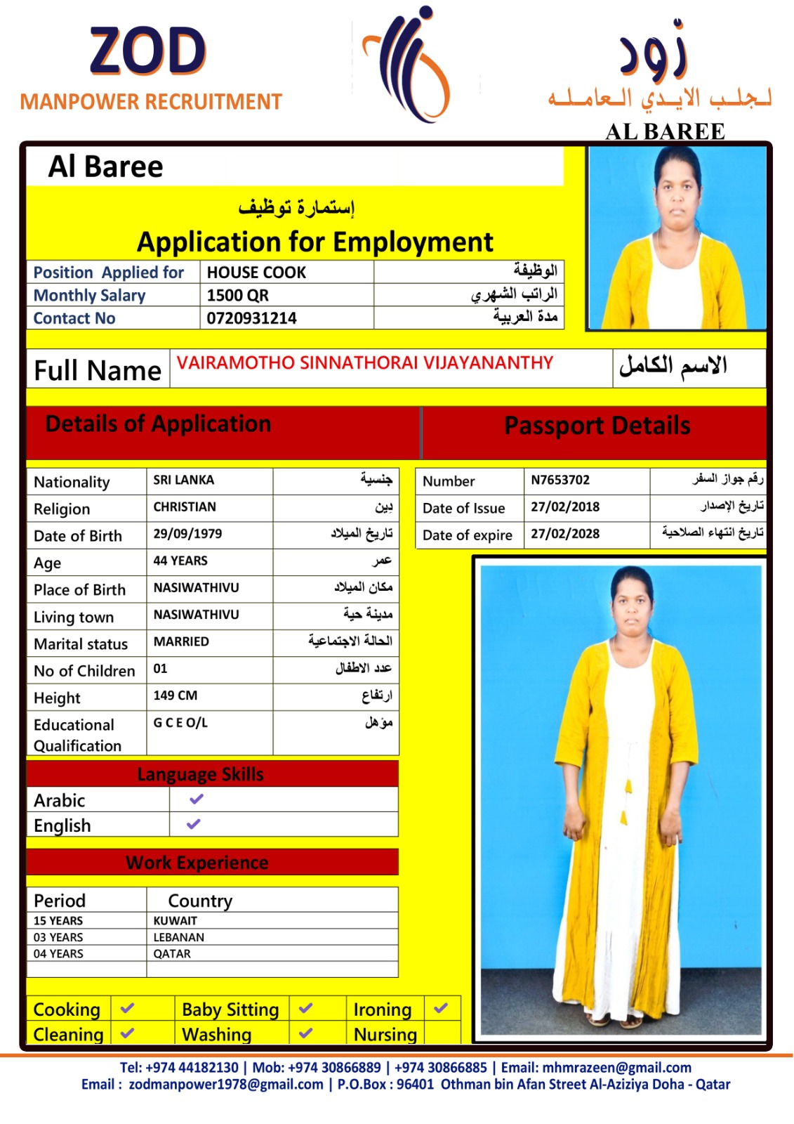 Name - English VAIRAMOTHO SINNATHORAI VIJAYANNTHY