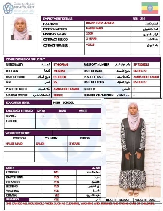 Name - English RUZIYA TURA LENCHA