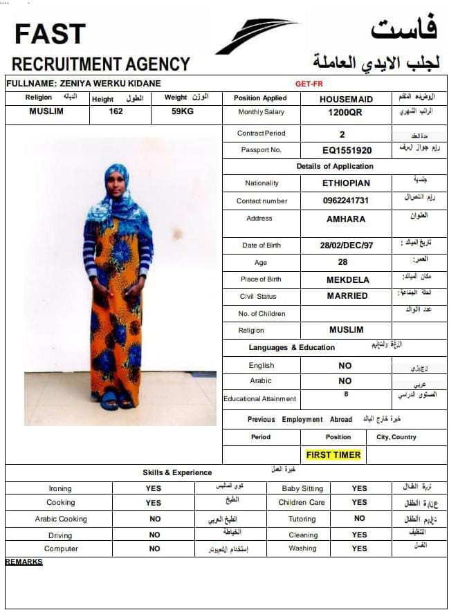 Name - English Zeniya Werku Kidane