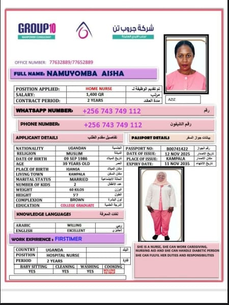 Name - English AISHA NAMUYOMBA/UGANDAN NURSE