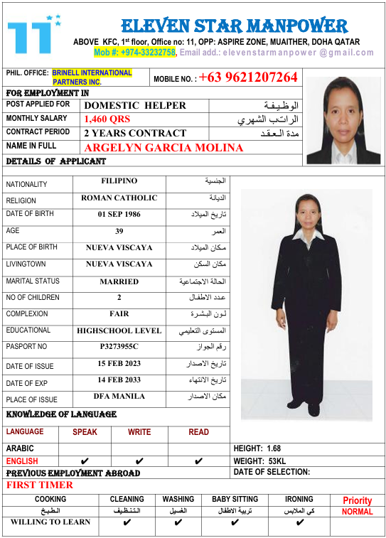 Name - English MOLINA, ARGELYN GARCIA -HSW