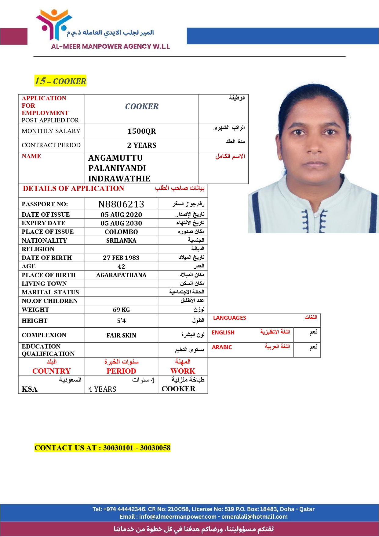 Name - English ANGAMUTTU PALANIYANDI INDRAWATHIE