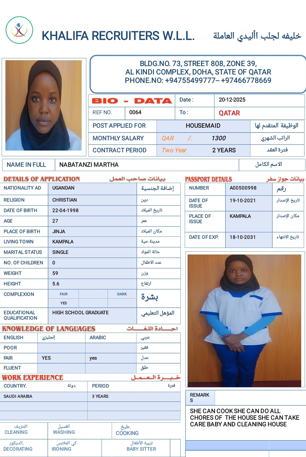 SHE CAN COOK SHE CAN DO ALL CHORES OF THE HOUSE SHE CAN TAKE CARE BABY AND CLEANING HOUSE