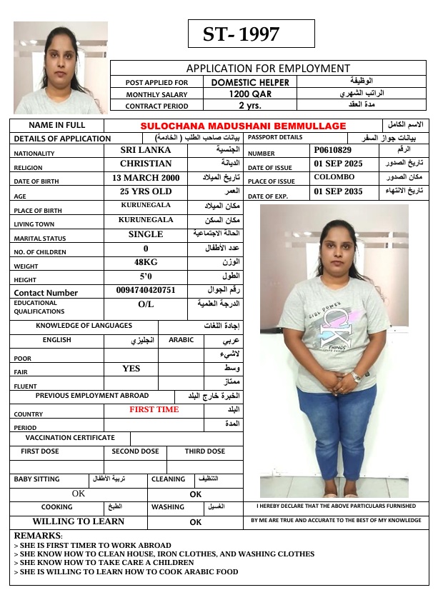 | Name - English | SULOCHANA MADUSHANI MENDIS BEMMULLAGE |