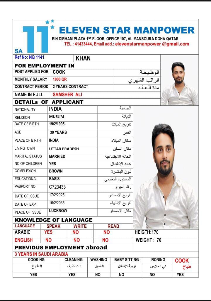 SAMSHER ALI/ COOK