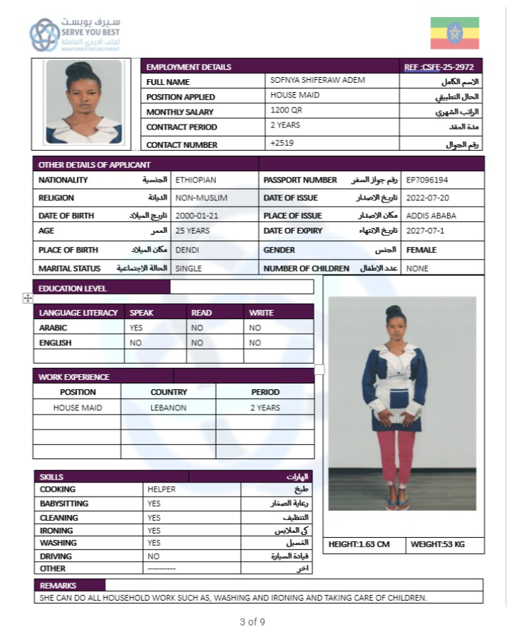 Name - English sofnya shiferaw adem