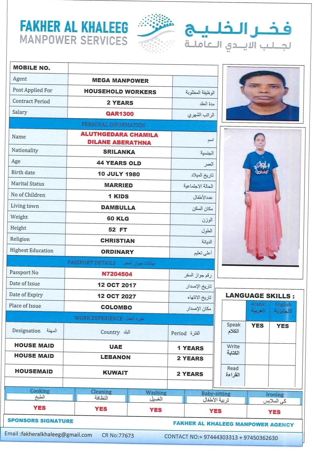 Name - English ALUTHGEDARA CHAMILA DILANE ABERATHNA