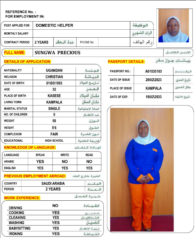 SHE KNOWS CLEANING WASHING IRONING TAKE CARE OF BABY WIILING TO LEARN ARABIC FOOD ALSO