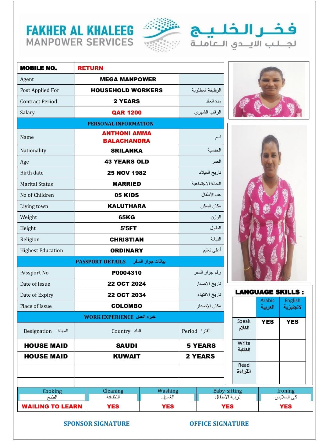 Welcome Are you looking for a driver, nurse, house manager, cleaner, nanny, secretary, professional workers for companies, security and guard personnel, foreman .... etc. Have you spent a long time looking for a maid? Have you made a great effort to find the right person? But to no avail ... Don't worry, we have the perfect solution to your problem Services…