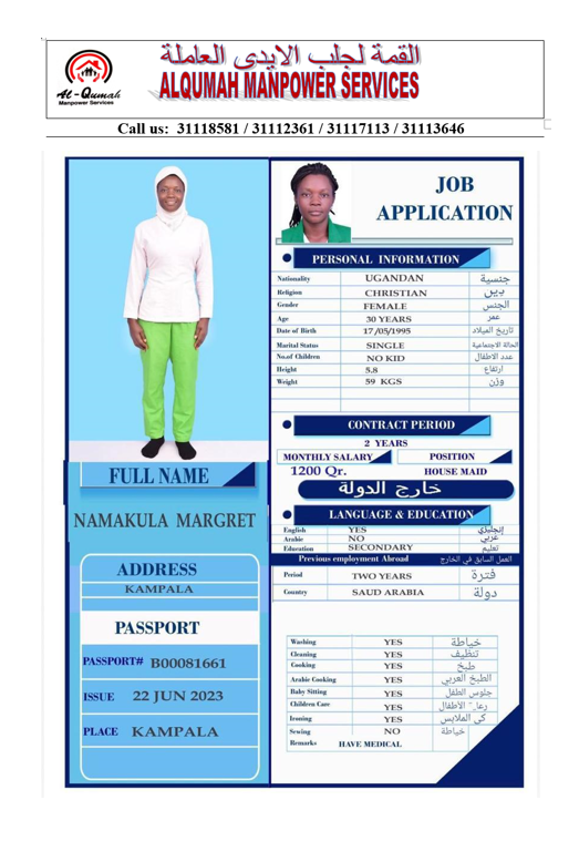 Welcome Are you looking for a driver, nurse, house manager, cleaner, nanny, secretary, professional workers for companies, security and guard personnel, foreman .... etc. Have you spent a long time looking for a maid? Have you made a great effort to find the right person? But to no avail ... Don't worry, we have the perfect solution to your problem Services…