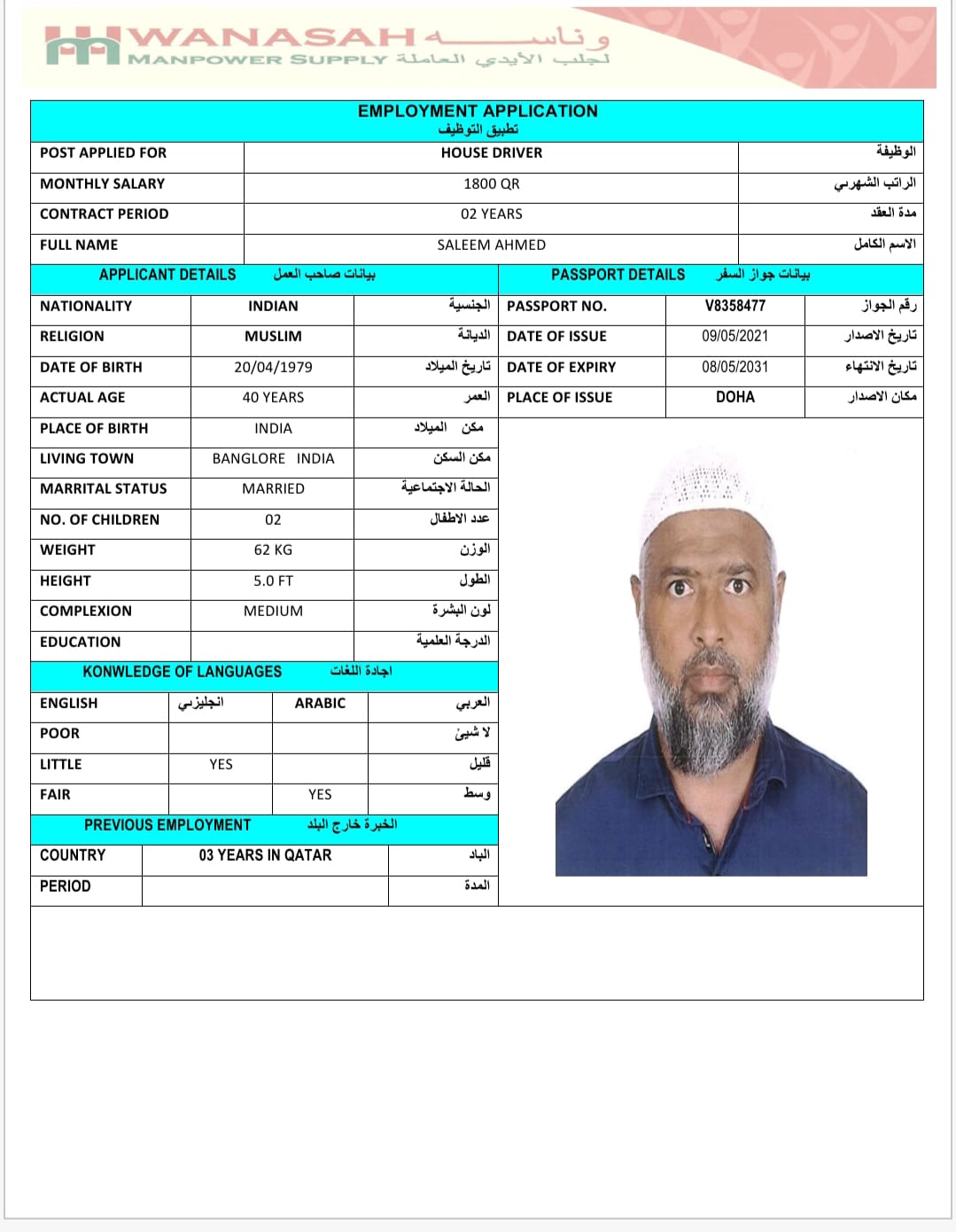 Name - English SALEEM AHMAD / QATAR LICENCE