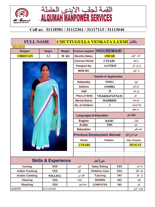 Welcome Are you looking for a driver, nurse, house manager, cleaner, nanny, secretary, professional workers for companies, security and guard personnel, foreman .... etc. Have you spent a long time looking for a maid? Have you made a great effort to find the right person? But to no avail ... Don't worry, we have the perfect solution to your problem Services…