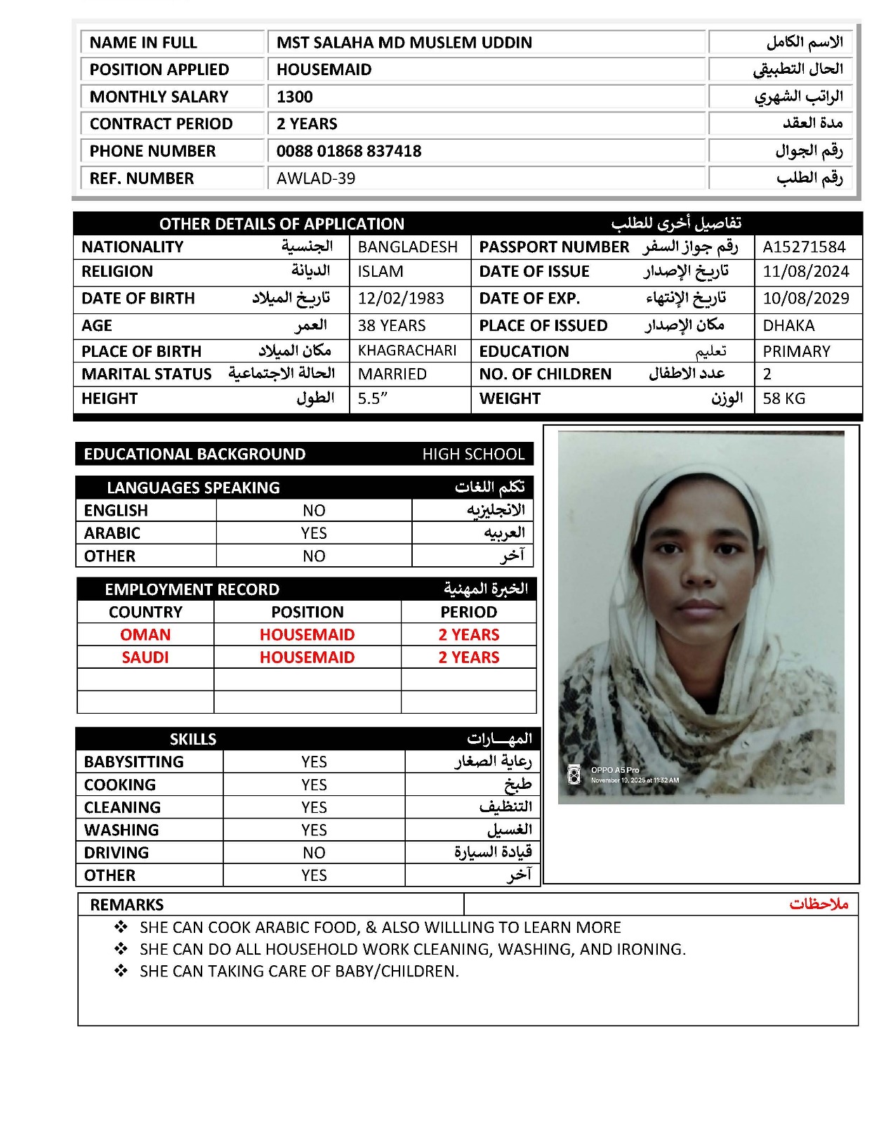 Welcome Are you looking for a driver, nurse, house manager, cleaner, nanny, secretary, professional workers for companies, security and guard personnel, foreman .... etc. Have you spent a long time looking for a maid? Have you made a great effort to find the right person? But to no avail ... Don't worry, we have the perfect solution to your problem Services…