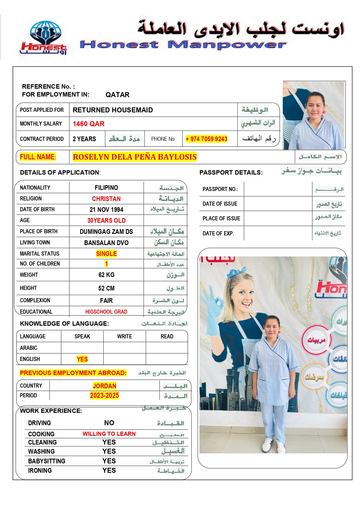Welcome Are you looking for a driver, nurse, house manager, cleaner, nanny, secretary, professional workers for companies, security and guard personnel, foreman .... etc. Have you spent a long time looking for a maid? Have you made a great effort to find the right person? But to no avail ... Don't worry, we have the perfect solution to your problem Services…