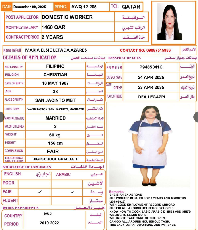 SHE KNOWS CLEANING WASHING IRONNG TAKE CARE OF BABY SHE CAN COOK ARABIC FOOD WILLING TO LEARN MORE