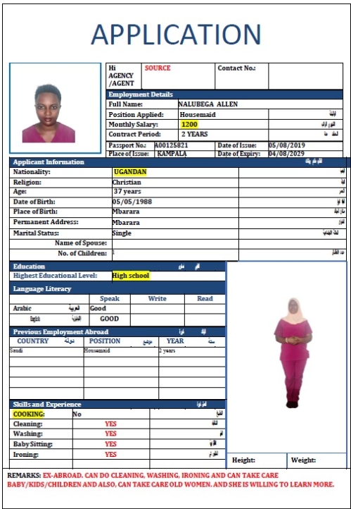 SHE CAN CLEANING. IRONING, WASHING BABY SATTING