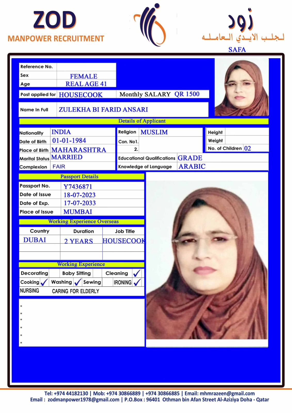 ZULEKHA BI FARID ANSARI