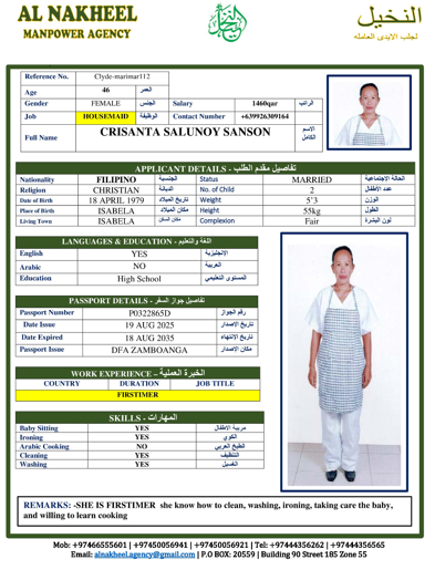 Name - English CRISTANA SALUNOY SANSON