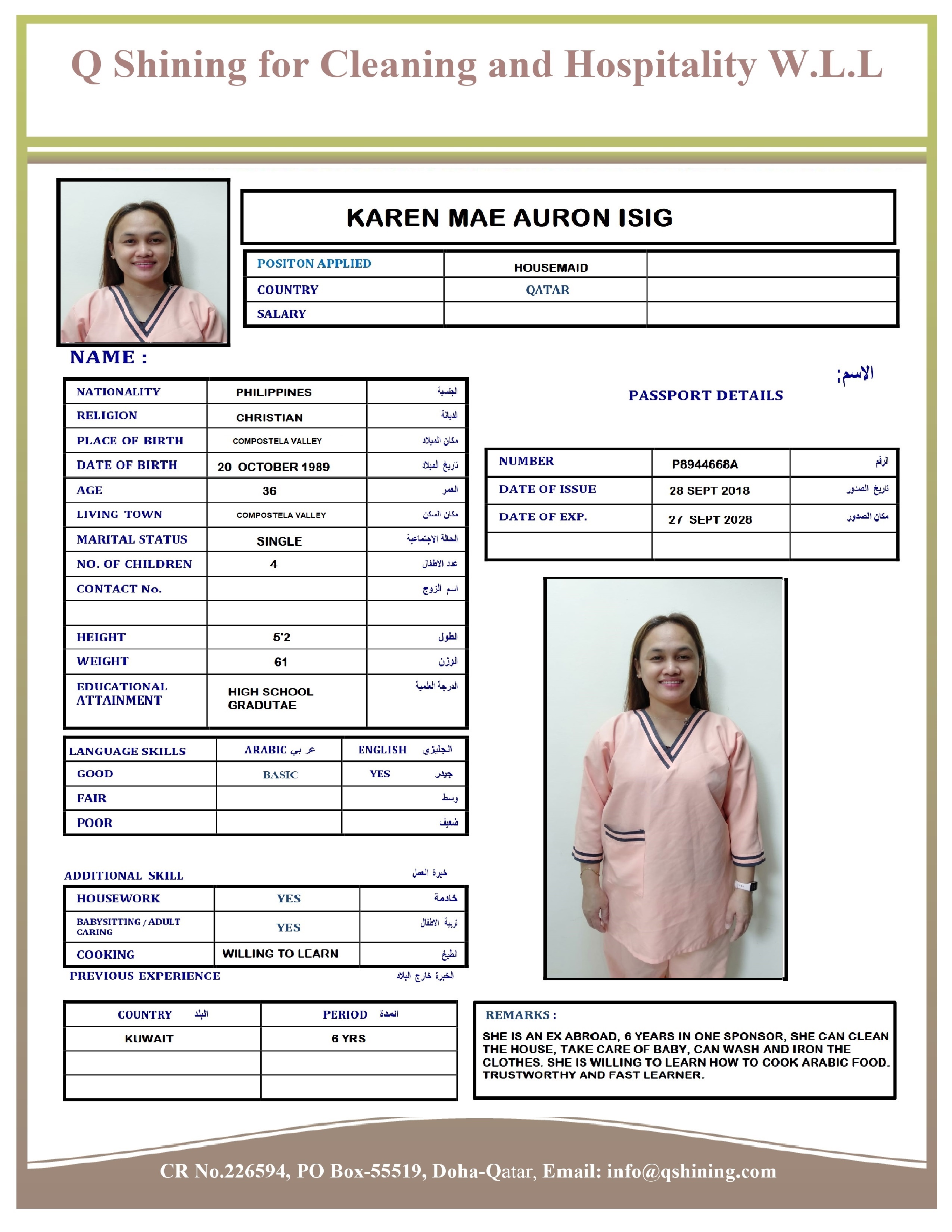 Welcome Are you looking for a driver, nurse, house manager, cleaner, nanny, secretary, professional workers for companies, security and guard personnel, foreman .... etc. Have you spent a long time looking for a maid? Have you made a great effort to find the right person? But to no avail ... Don't worry, we have the perfect solution to your problem Services…