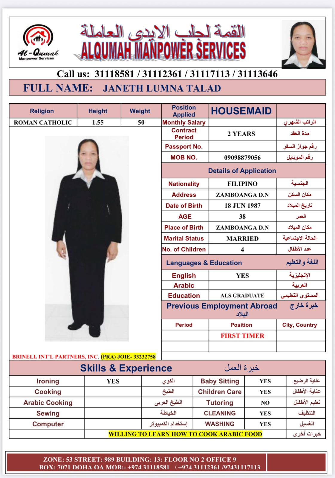 Welcome Are you looking for a driver, nurse, house manager, cleaner, nanny, secretary, professional workers for companies, security and guard personnel, foreman .... etc. Have you spent a long time looking for a maid? Have you made a great effort to find the right person? But to no avail ... Don't worry, we have the perfect solution to your problem Services…