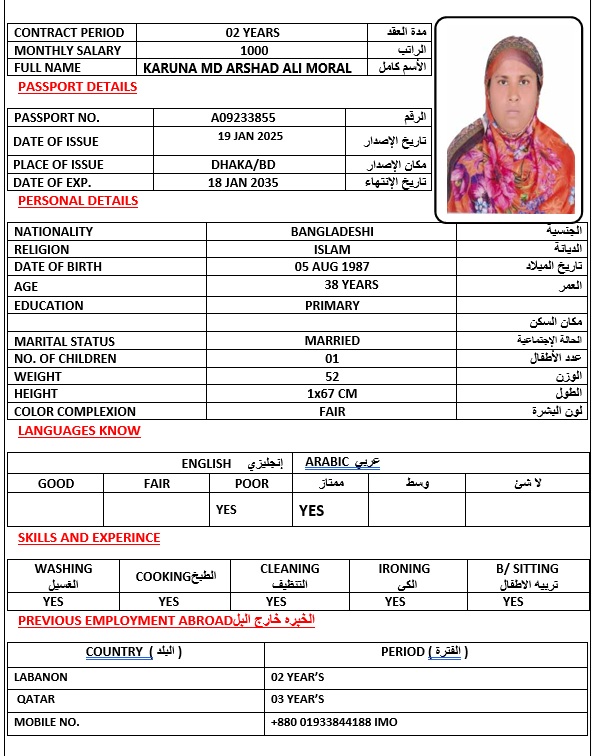 > SHE IS EX ABROAD FROM LEBANON 2 YEARS AND QATAR 3 YEARS