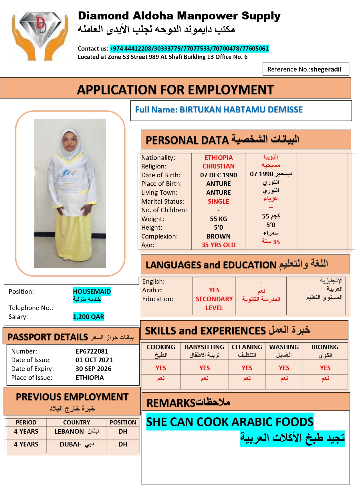 | Salary | 1200 ريال قطري |