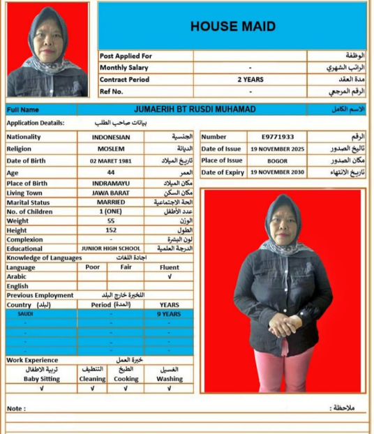 SHE KNOWS CLEANING WASHING IRONING TAKE CARE OF BABY SHE CAN COOK ARABIC FOOD ALSO WILLING TO LEARN MORE